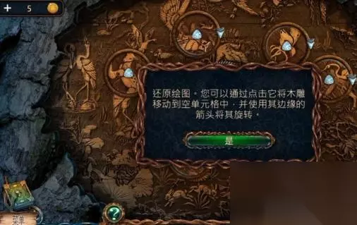 5、在6处的木雕可以看到有一个小箭头,按住可以转动木雕。旋转至箭头消失,就说明该处的木雕已经还原绘图成功。