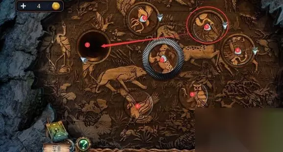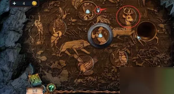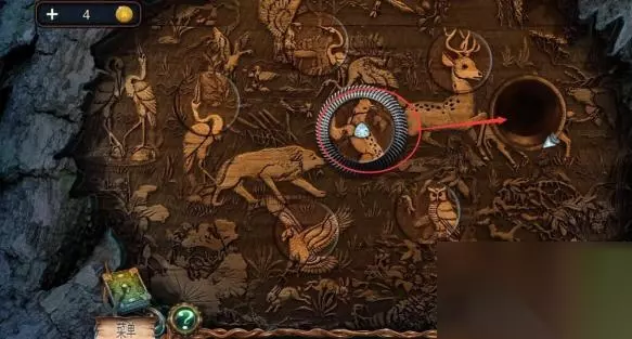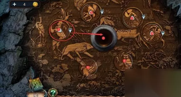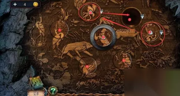 1、密室逃脱绝境系列4迷失森林的雕像摆放需要先将三个木雕放入机关中。
