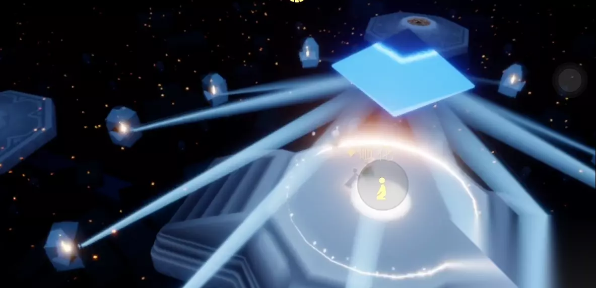 神坛冥想点则位于禁阁顶楼左侧山脚下,完成冥想任务可获得奖励。玩家需收集全部地图的小金人(共79个),并通过暴风眼献祭积累升华蜡烛,逐步解锁先祖的永久光之翼节点。当前版本中,11翼需收集150个光之翼,12翼需200个,但受限于游戏内可收集的光之翼总数,12翼尚未有玩家达成。