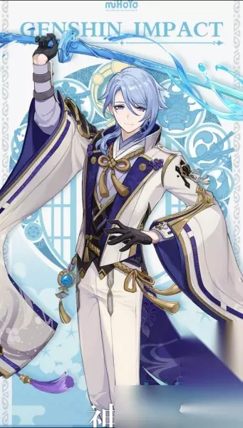 角色五:神里绫人 神里绫人作为绫华的哥哥,也是五星角色,但是是水元素角色; 在游戏当中扮演的是以为身份尊贵的公子,技能和角色形象看起来都很贵气。