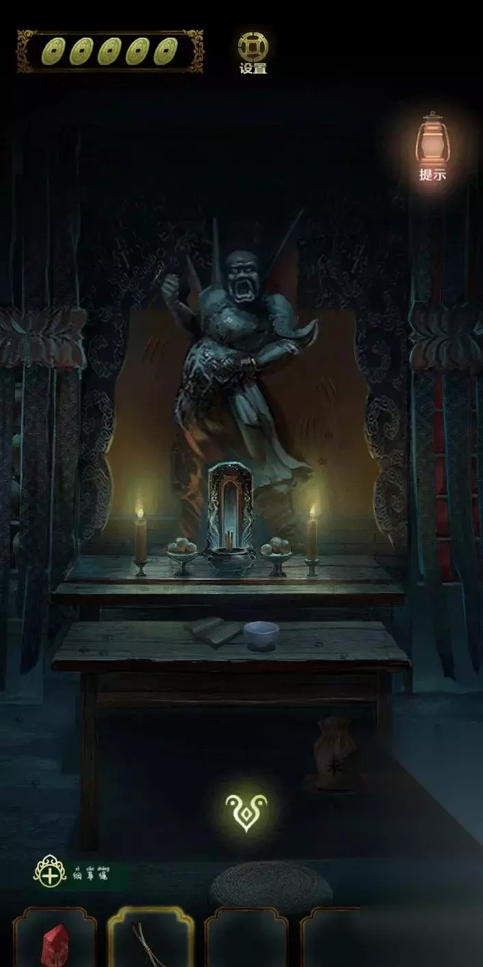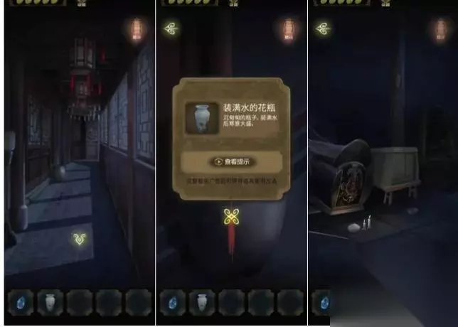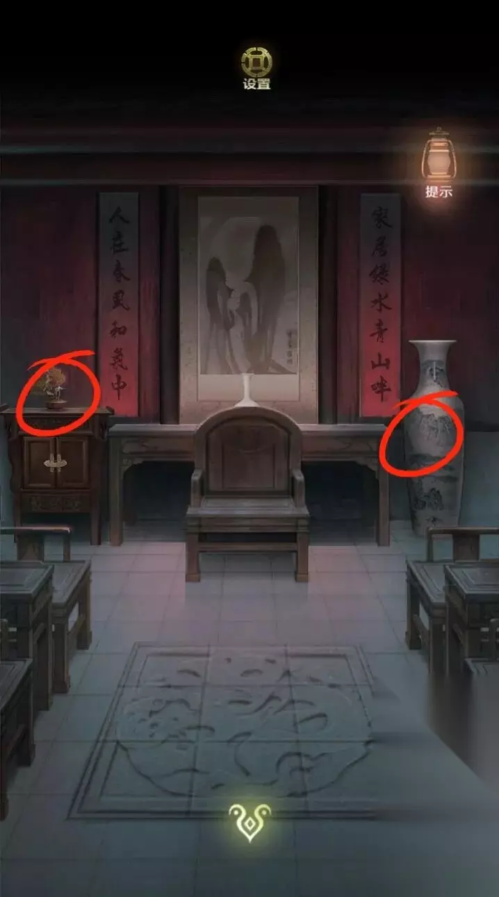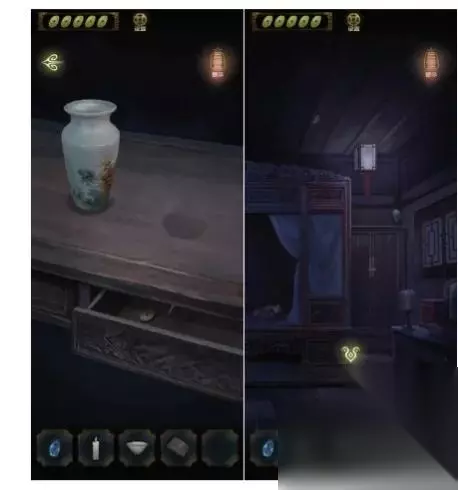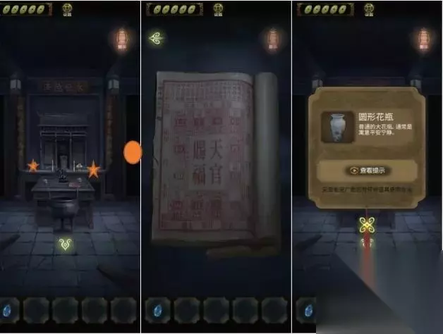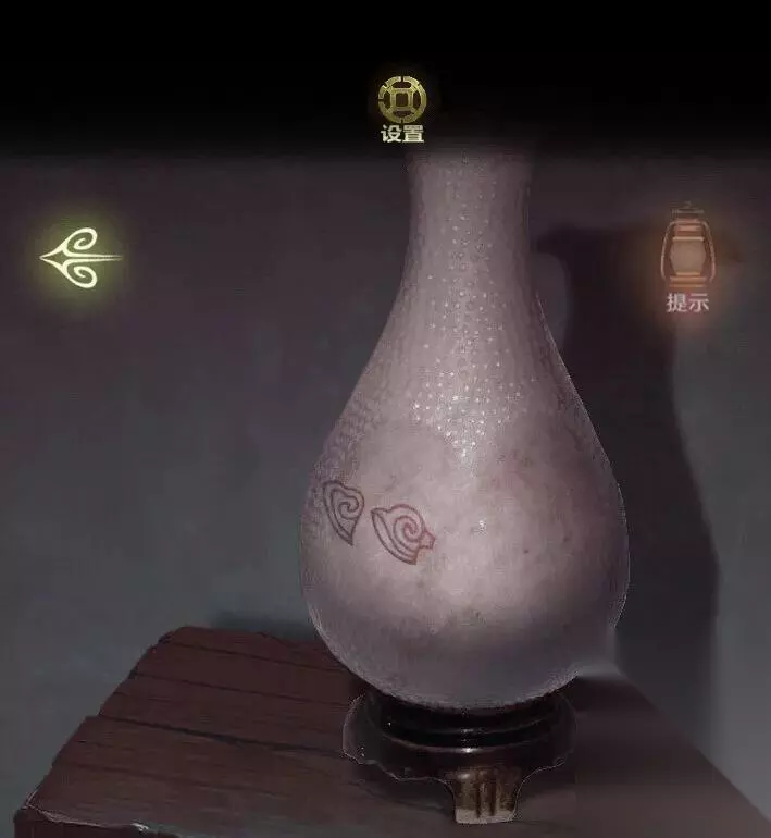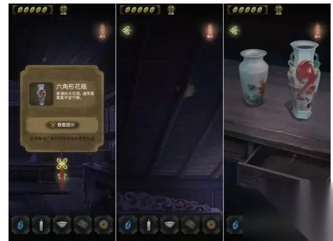 进入祠堂内部,在桌子上获得信息(生肖),点击左边获得花瓶