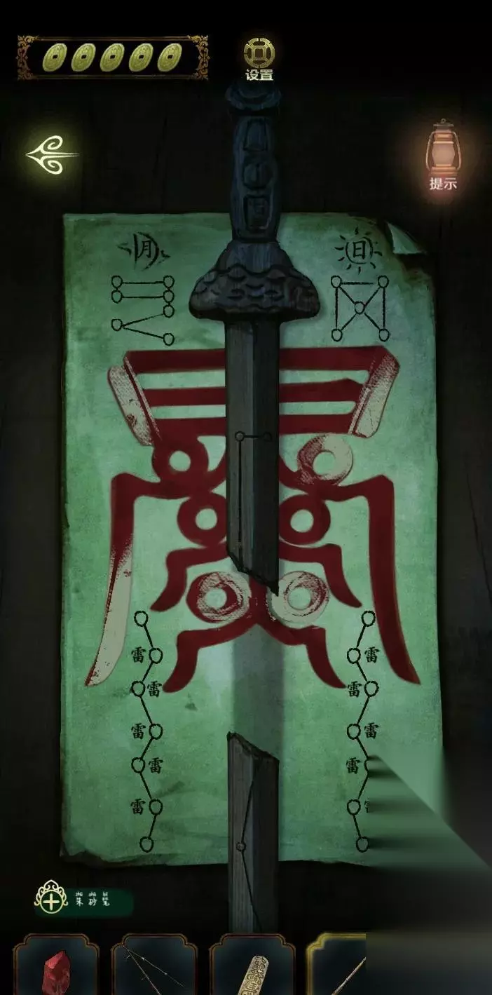来到灵棚外大树下,将罗盘交给三叔公。 前往福字巷,进入里面的巷子,点击有符文的门,使用玉符,进入信字巷。 点击有符咒的门,使用铜镜观察,看到一只黑猫,记录黑猫尾巴的摇摆规律,根据铜镜看到与现实相反原则,得到密码:左1、右2、左3、右5、左2、右4。