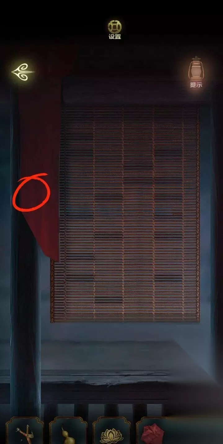 前往前厅的走廊,点击窗帘,使用剪刀,得到窗帘纱布。