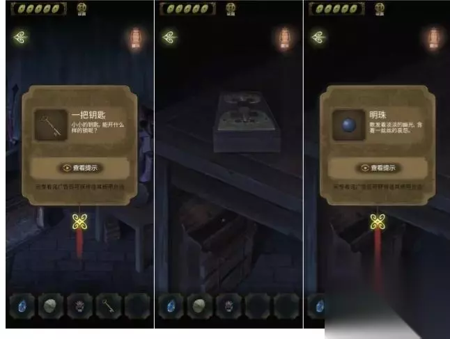 解锁后获得小钥匙,打开桌子自己的盒子获得一个明珠。
