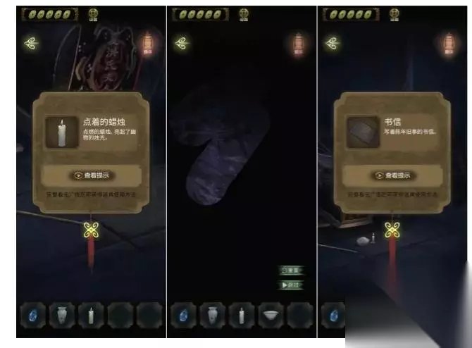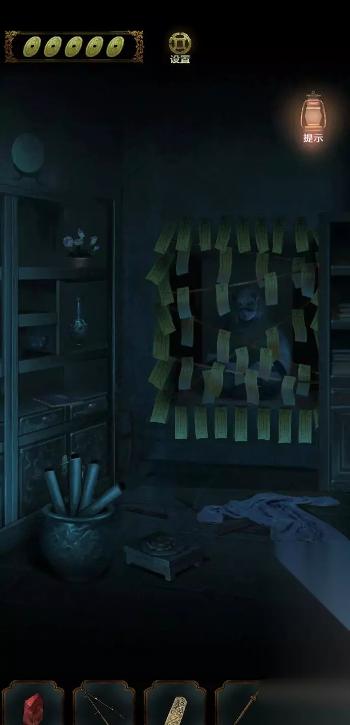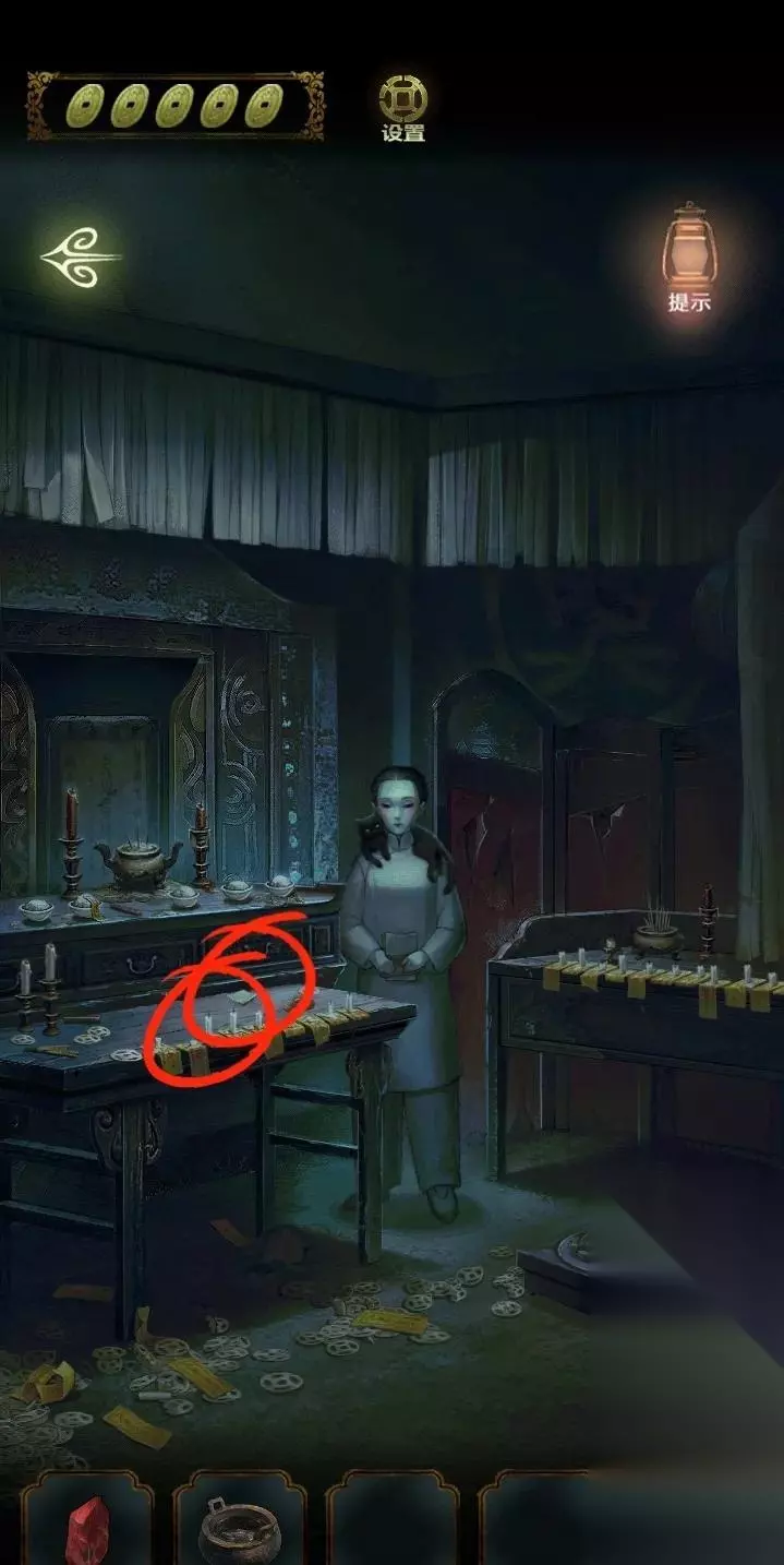 进入棺材房间,在棺材前获得蜡烛和空碗,点击简陋的棺材通过涂抹的方式,完成游戏,获得一封书信。