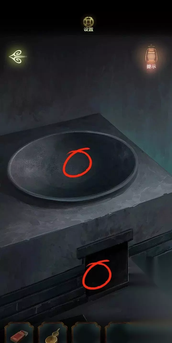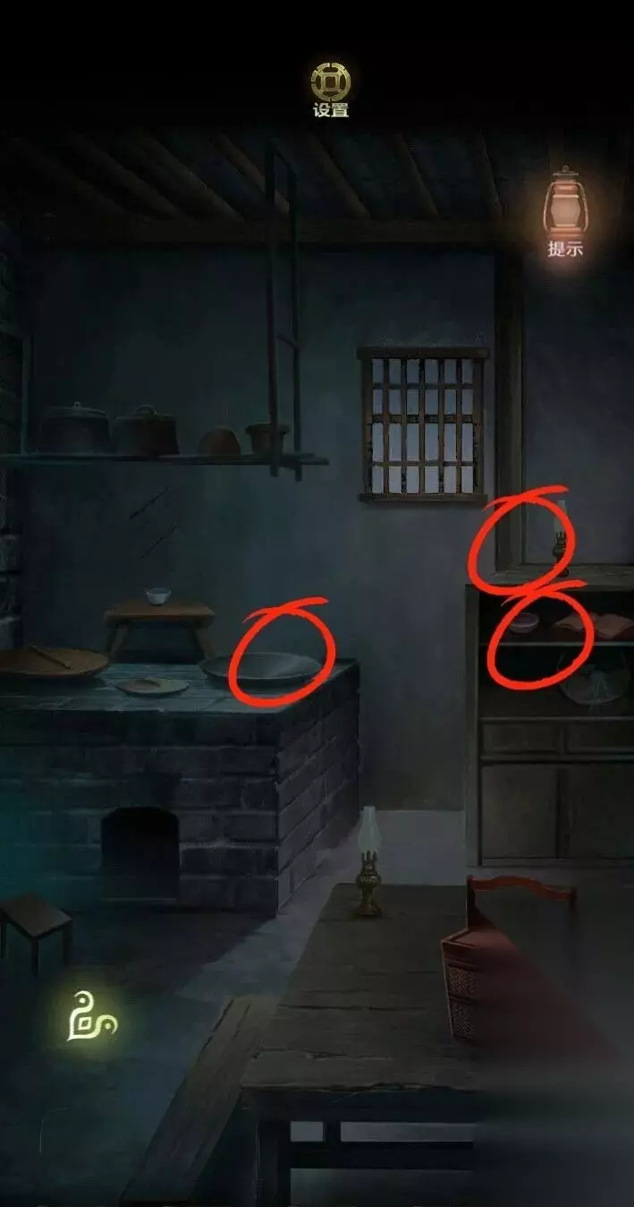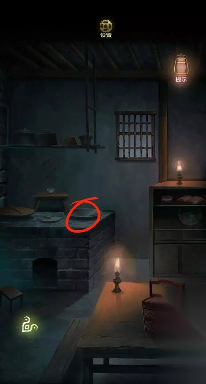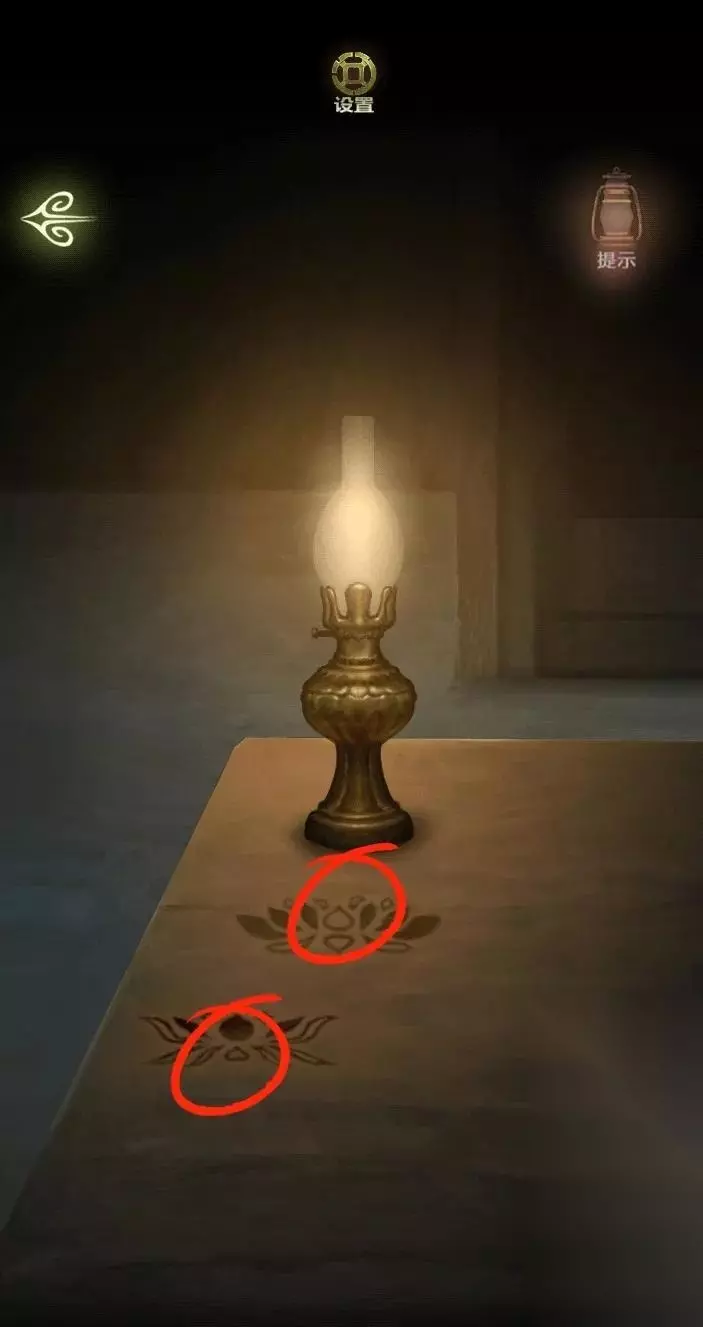 到厨房点两盏油灯,油灯的照耀下有莲花图案的影子,得到密码。