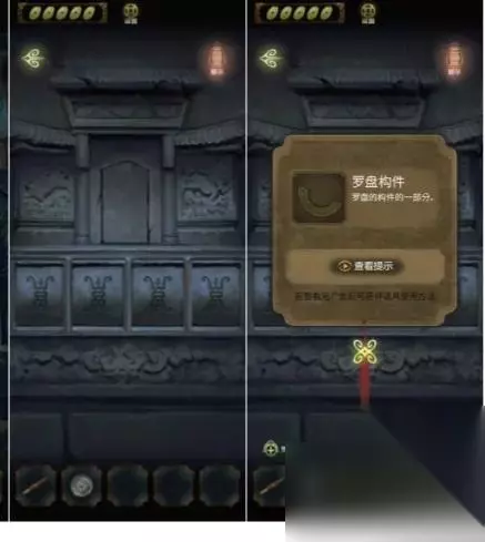 来到福字巷,点击左侧墙壁上图案,输入符文密码,得到罗盘构件。