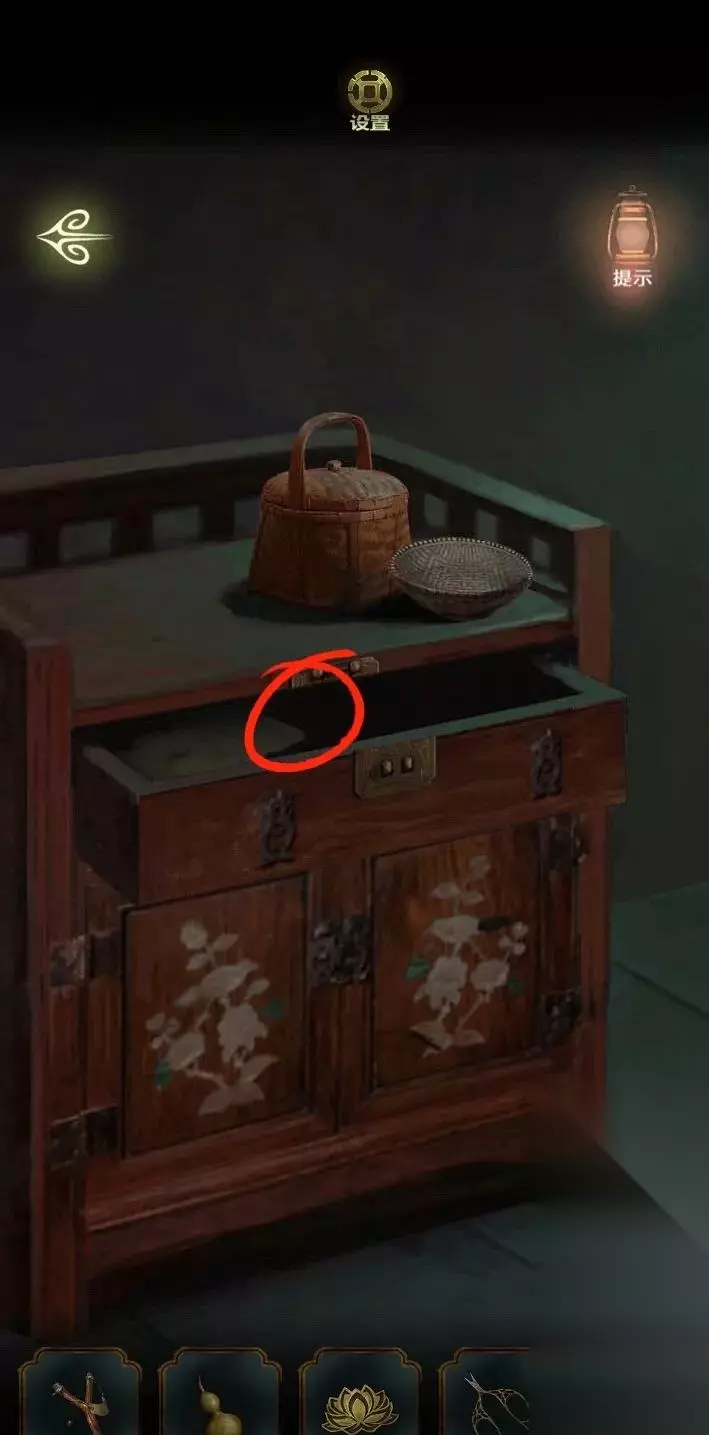 回到奶奶的房间,点击柜子,用钥匙打开抽屉,点击纸和剪刀,得到剪刀。