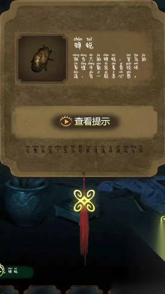 进入里屋,点击左侧柜子上的一本书,找到书中的蝉。