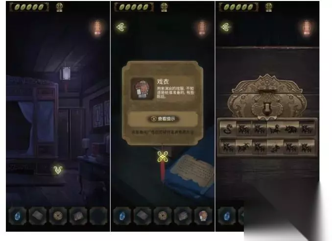 用钥匙打开衣柜,获得一件戏服和上锁的小盒子(密码看起来是十二生肖)