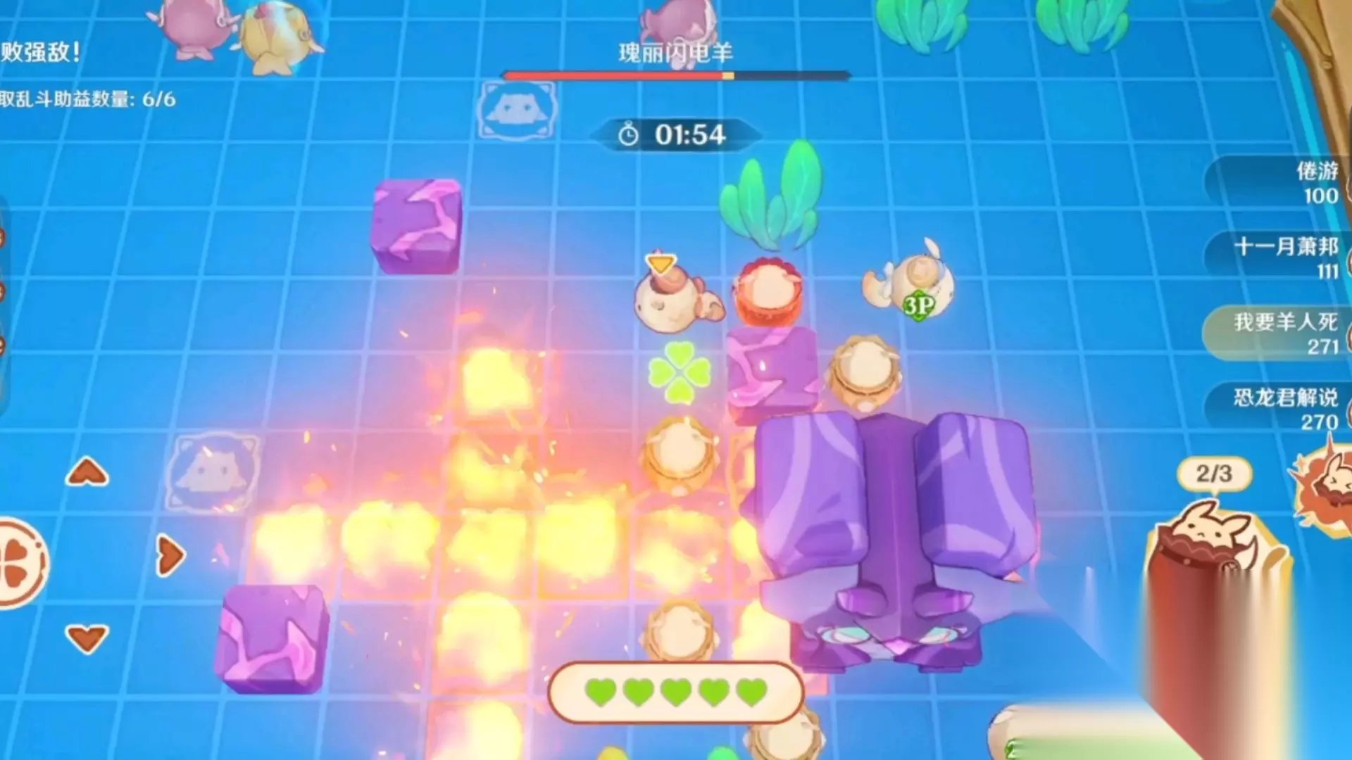 嘟嘟可爆轰大乱斗提供了三种预设对局玩法,玩家可以进入其中任意一种,想获取尽可能高的分数首先要了解分数的来源,大概可以分为两类,一类是完成与排名奖励,还有一类是对局参与度奖励,成功完成对局能获得基础四百评分,对强敌进行最后一击能获得五十评分。击败最多敌人和承受最多伤害分别能获得五十评分,破坏最多地形和对强敌造成最高伤害分别能获得五十评分,全部拉满能获得六百五十评分。