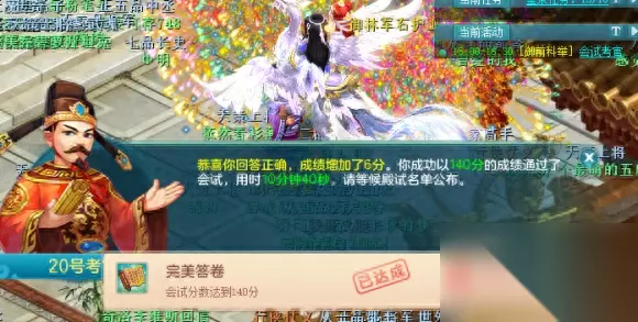 如果你也想体验那种"十年寒窗无人问,一朝成名天下知"的感觉,那么《神武4》电脑版中的御前科举活动一定会非常适合你,在这里你会体验和古代科举制度一样通过层层严酷的筛选才能杀出重围。御前科举活动开始于每个月第三个周日的15:00-17:30,首先进行的会试有共20个考点,玩家需要依次找到会试考官进行答题,之后会依据答对题目的数量和所耗时间进行综合排名,每答对一题加6分,答错不得分,但会在耗时上增加20秒。排名到了前20位的玩家就可以获得殿试资格,直面唐王李世民。同时官方还非常贴心的给玩家准备了"买活"机会,会试可以进行两轮,第一次没发挥好的玩家不要气馁,重整旗鼓再来一次吧。