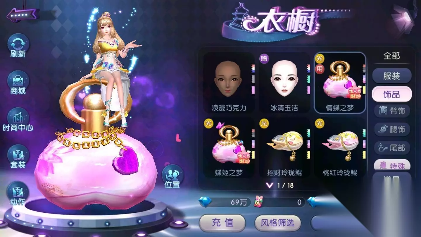 游戏专门为情人节推出了爱情戒指“恶魔戒指”。红色的心被一圈圈紧紧包围着,还有一条小恶魔的尾巴。蓝色的翅膀小巧可爱,就像热恋中的小情侣之间的小互动,有趣又甜蜜。戒指是重要的爱情信物,送给喜欢的人就对了!