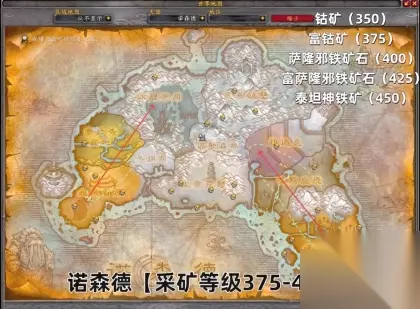 375-450级 诺森德,350级开始挖钴矿,400级开始挖萨隆邪铁矿石。