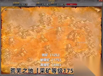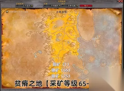 65-125级 贫瘠之地,65级开始挖锡矿,75级开始可以挖银矿。