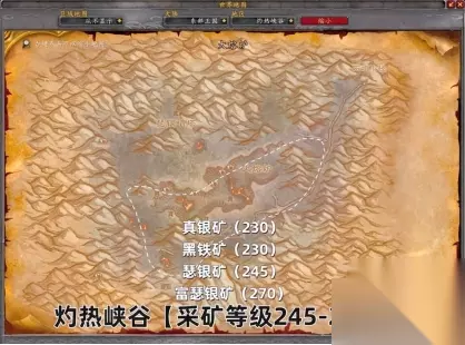 245-270级 灼热峡谷,245级开始挖瑟银矿,270级开始可以挖黑铁矿。