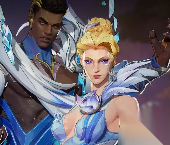 这套皮肤不仅是对外观的彻底重塑,更在视觉上讲述了一个关于默契与共舞的故事。正如官方所述:“让光与影在冰面上交织出一段圆舞曲。” 它强调的是一种战斗中的和谐与优雅姿态,为激烈的对战注入了一抹静谧而华丽的冬日诗意。