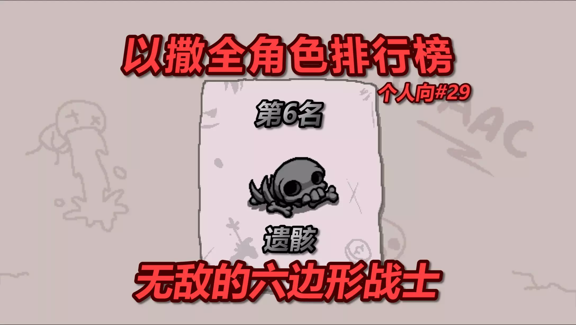 依旧是投币过1500日更!!! 游戏名:以撒的结合 角色:参孙 角色特性:自带道具嗜血(受伤当前层增加攻击,最多六次,上限6点伤害),移速+0.1,弹速+0.31,射程-1.5,攻速-0.1 使用建议:视频中已阐述的很清楚,可套用在任何红心角色上。