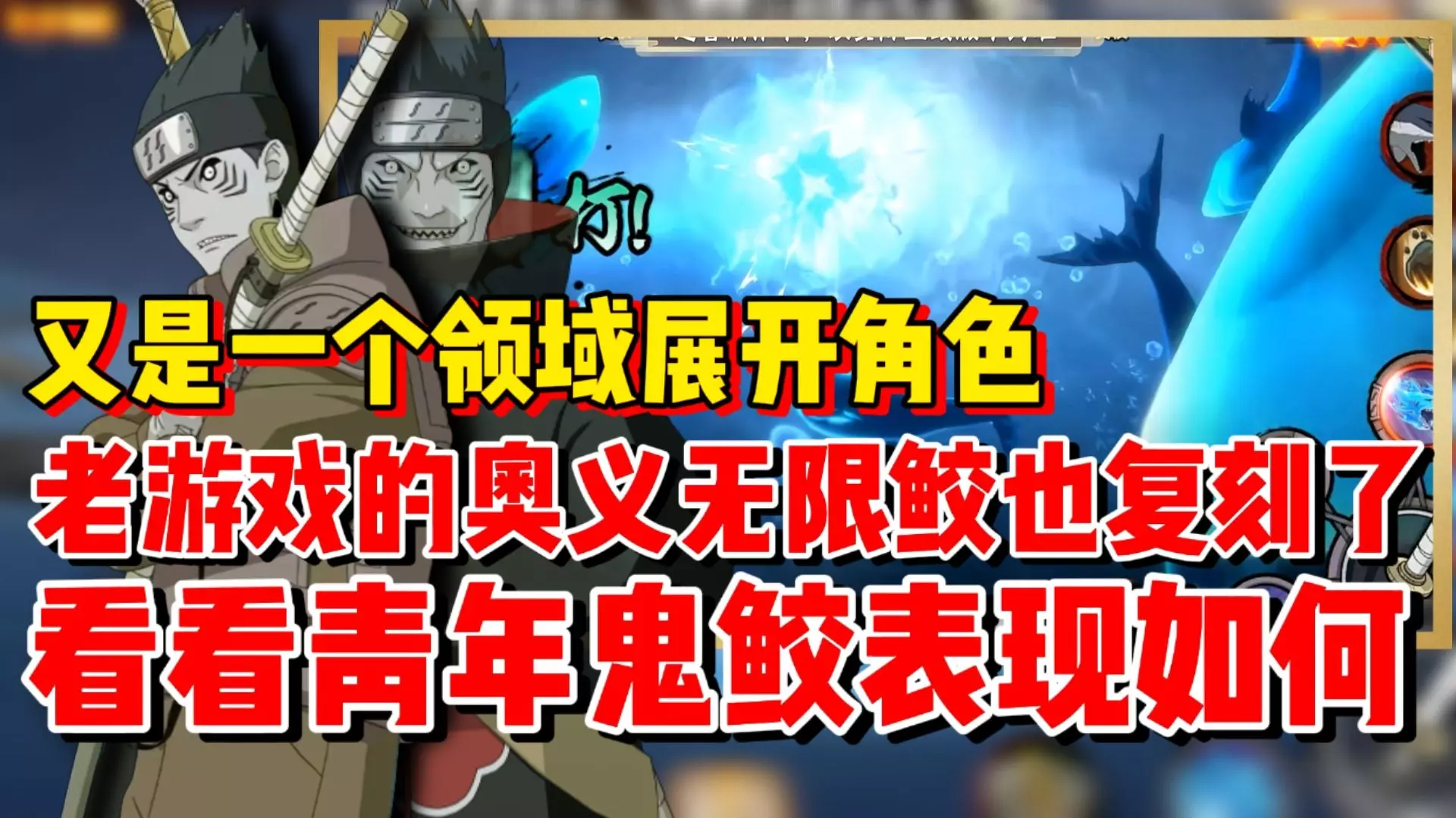 这是火影忍者手游的决斗场测试内容,对青年鬼鲛的技能机制进行测试,认为该忍者仅配得上蓝卷A忍的定位,相关测试仅为娱乐,无需上纲上线。