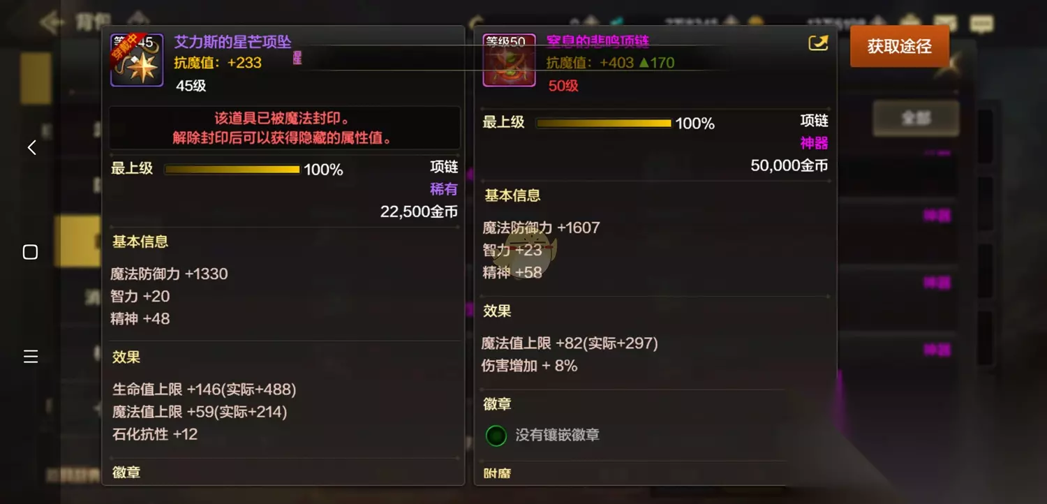 《DNF》手游悲鸣首饰属性评价 1、首先要注意的是,悲鸣首饰50级的属性是要优于40级的,所以升级完的悲鸣才是完全体。 2、先来看看悲鸣的属性,项链依然是最值得优先做出来的。