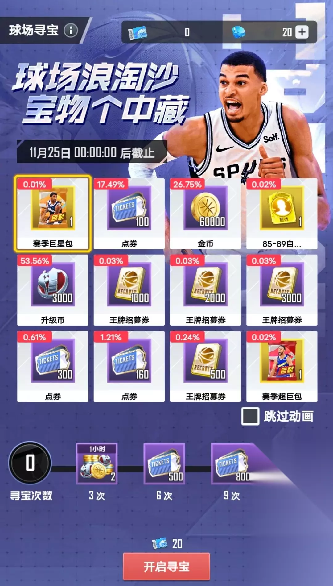 (最终效果以更新后实际效果为准) 球场寻宝活动正式上线 全新活动“球场寻宝”正式上线,活动内共有12种奖励,玩家每次寻宝需消耗一定数量的寻宝券,翻开即可获取奖励!总计12种不同奖励,每种奖励最多获得一次。而累计寻宝达到3/6/9/12次时还将获得额外奖励,各位优秀的经理人快来试试你的好运吧~!