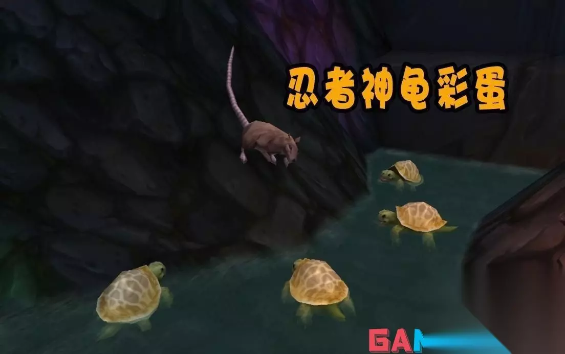 1,致敬忍者神龟动漫。在达拉然下水道坐标(48,50)的地方,可以看到有一只下水道老鼠身边围绕着四只下水道乌龟,这正是致敬的一个80年代经典的国外动漫——忍者神龟,故事的主角正是四只在下水道变异的乌龟,而他们的师傅正是一只年迈的老鼠,想必很多玩家会对这个动漫印象深刻,这也是无数80后和90后玩家的童年记忆。