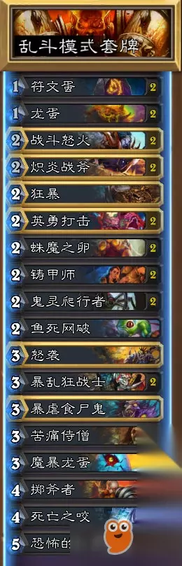 苦痛也可以带2张,看职业有没更好的卡 卡组推荐: 1.乱斗奴隶蛋蛋战