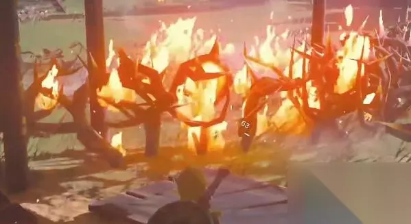 5、发觉鸟望台被荆棘包围着,再使用火苗果,烧毁这种荆棘。