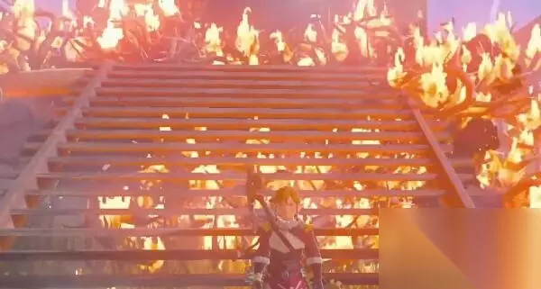 4、等雨停应用火苗果把荆棘给点燃掉,从烧毁的区域进来。