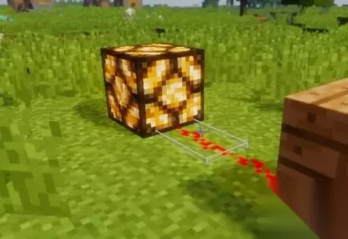 4、然后选择其中一个方块接通红石信号。