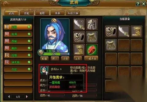 兵种升级说明 ① 兵种升级需要武将满足一定的等级条件,而且需要将魂。 ② 兵种等级越高,所需要的将魂品质与将魂数量越多 升级前:
