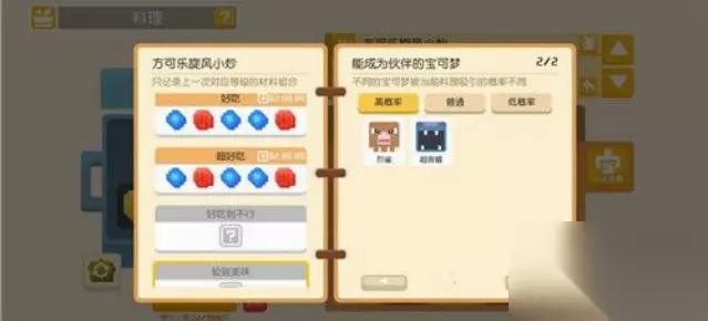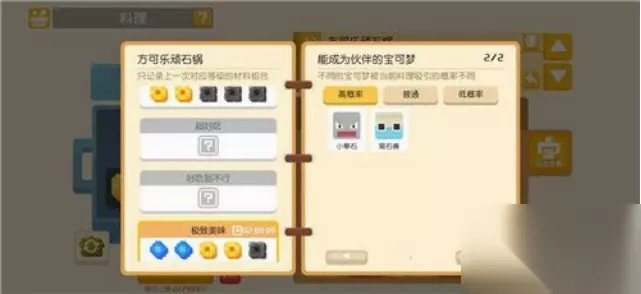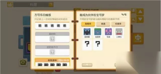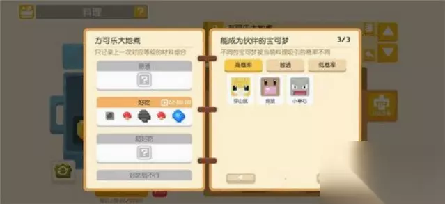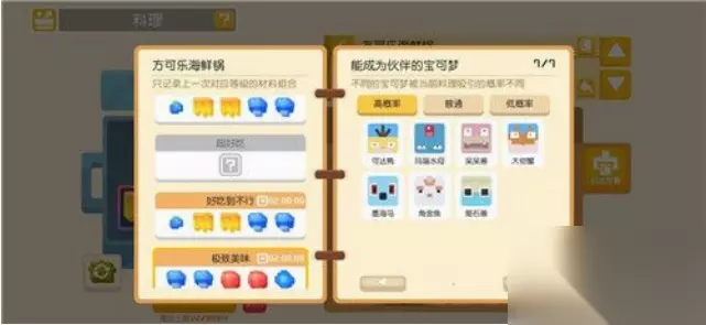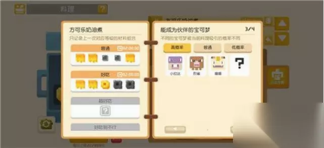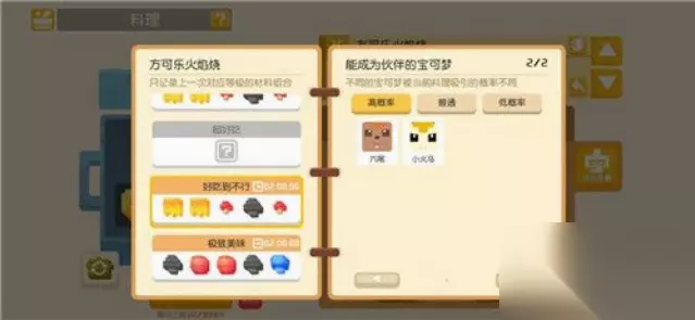 3、方可乐黄焖锅 (1)烹饪条件:放足量的黄色 (2)功能:吸引黄色类宝可梦
