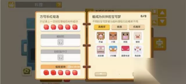 宝可梦大探险食谱配方大全2024 食谱配方: 1、方可乐红烩汤 (1)烹饪条件:放足量的红色 (2)功能:吸引红色类宝可梦