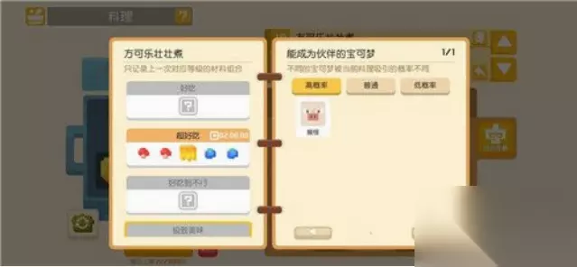 16、方可乐壮壮煮 (1)烹饪条件:多放点甜的东西外加少许蘑菇 (2)功能:吸引格斗属性宝可梦