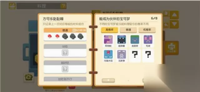 6、方可乐奶油煮 (1)烹饪条件:多放点甜的东西外加少许灰色 (2)功能:吸引一般属性的宝可梦