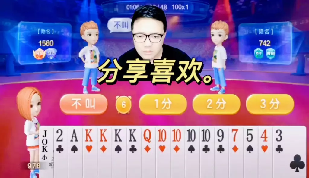 三岁玩牌破釜沉舟四个3的大胆一炸后期残局细腻的行牌为自己争取到了胜利!