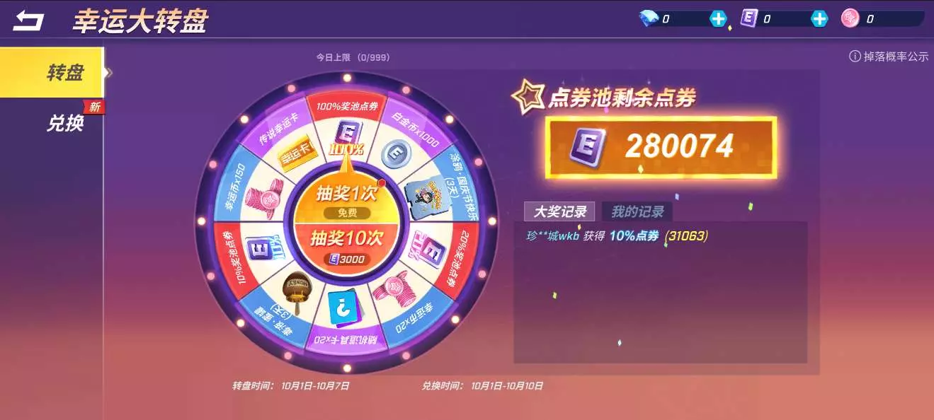 可抽奖时间:2025/10/1 12:30:01-2025/10/7 23:59:59