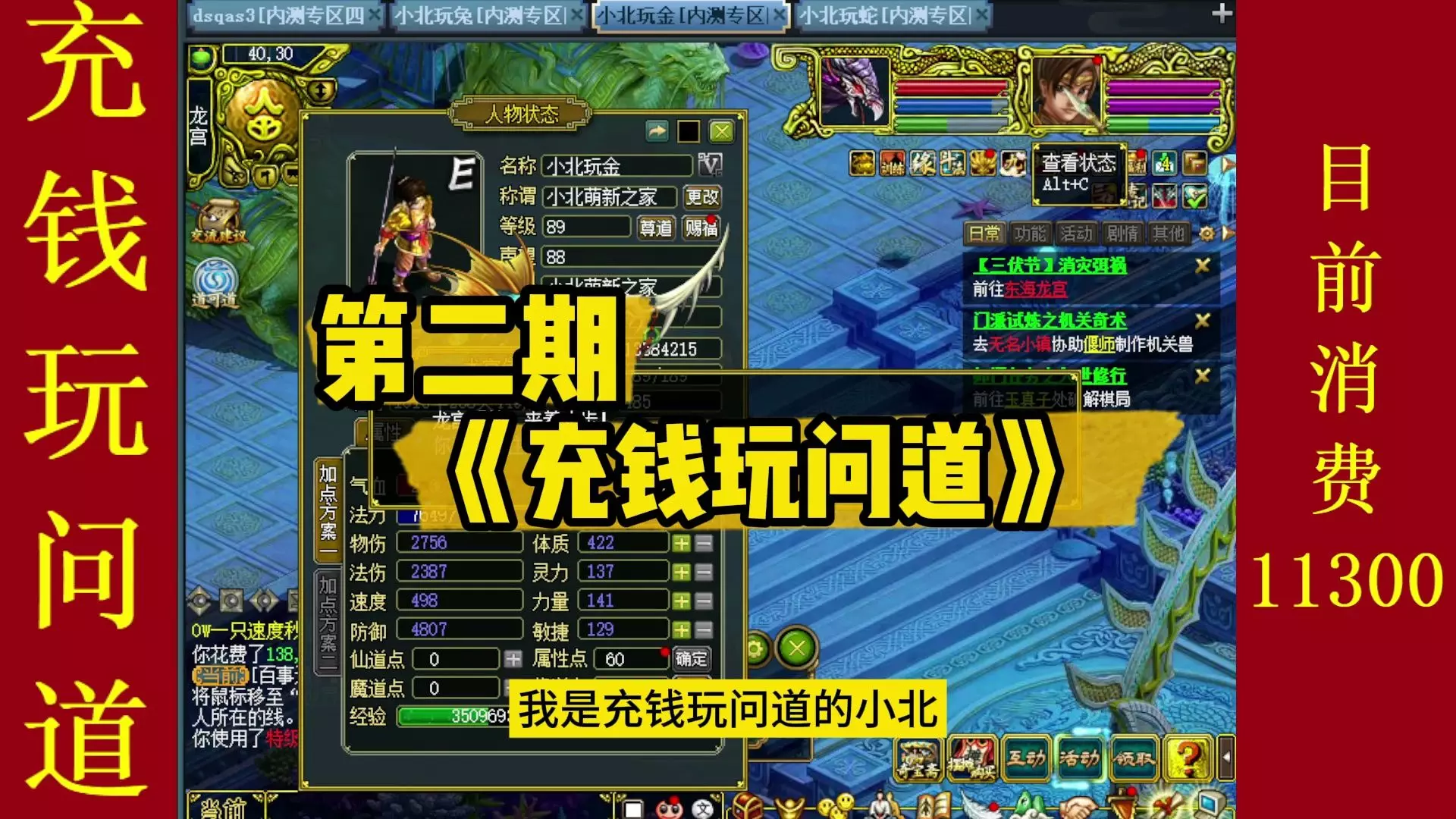 这是《充钱玩问道》第五期攻略,展示了充值16200后,角色装上天书可实现一轮秒怪,还展示了宠物属性、战斗触发效果等游戏内容,作者因过节家中有客人,无法日更请大家见谅。