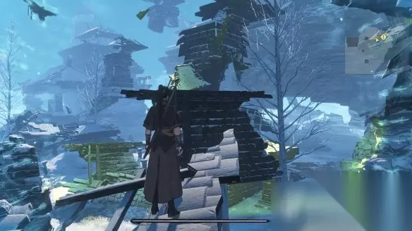 跳到此处时,利用探查功能找到上方的空间裂缝隙并传上去