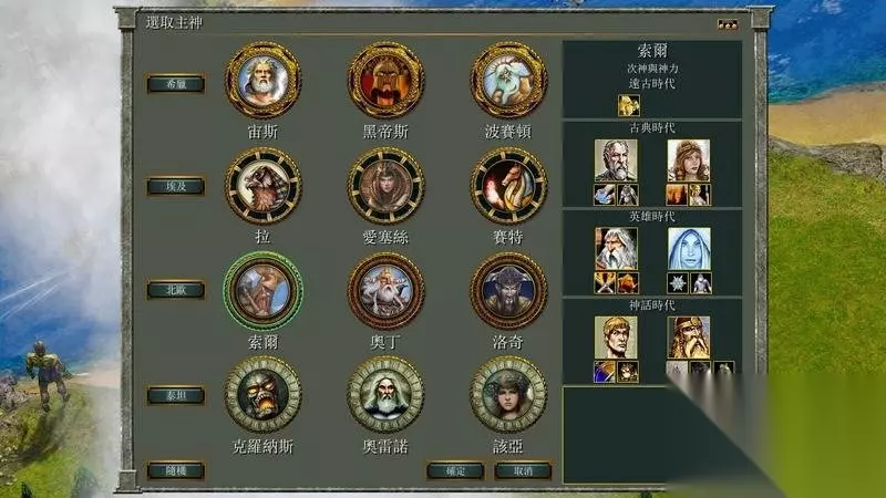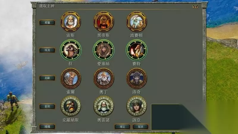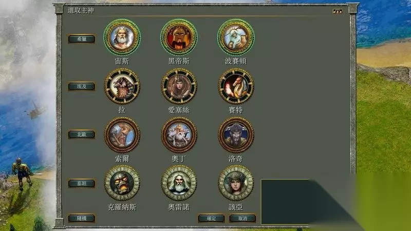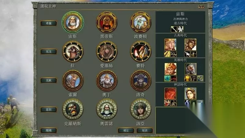 主神 宙斯: 神力可以召唤闪电杀死任一的单一部队。 神兽是飞天马,一个只会被远程攻击伤害的侦查部队。 黑帝斯: 神力能够以城镇中心为目标召唤一个护卫巨像。 神兽也是飞天马,该单位不具攻击力,不过探索很有用处。 波塞顿: 神力是动物招引法,可以指定地点聚集动物,提供食物来源。 神兽除了飞天马外还具有水上单位海马怪,是不死的水中侦查单位。