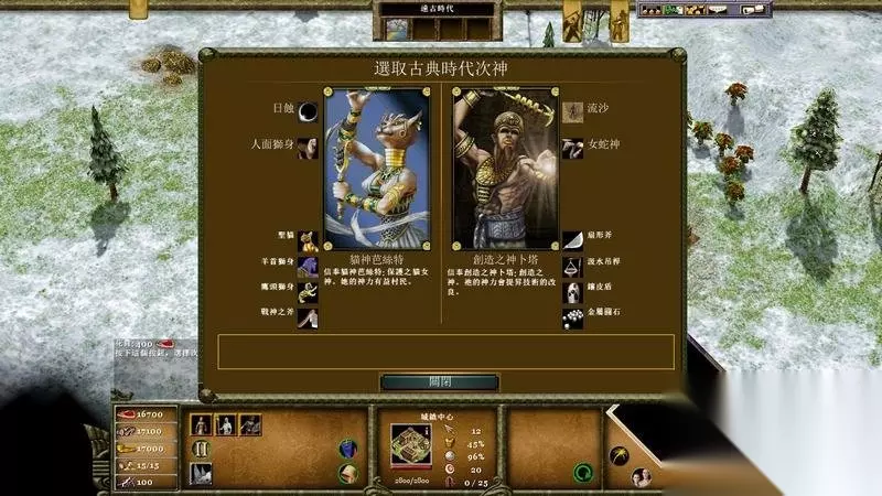 主神 拉: 神力是天降甘霖,可以加快范围内农田的采集速度。 艾赛斯: 神力可以加快范围内村民的采金速度。 赛特: 神力是天眼,可以暂时打开一个地点的战争迷雾。