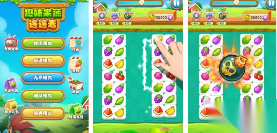 作为特别经典的连连看游戏,涵盖了多种不同的模式,比如休闲模式以及无尽模式等等,在选择了自己喜欢的模式之后,开局后就会看到各种美味的水果和蔬菜。这些物品的位置都是随机摆放的,玩家可通过仔细观察的方式,利用手指点击两个相同的图案就能快速消除,还支持多处转折。游戏也提供了放大镜或刷新等多样化的辅助道具,让您顺利通关。 高速下载 普通下载 优先233乐园APP下载 当你的精神压力比较大,当你的心情比较糟糕时,就可以从热门趣味小游戏大全中挑选,小编总结的这些符合所有玩家的需求,对年龄段没有任何要求。整体的操作都特别简单,有的都是专门为更多孩子们进行设计,能让孩子在玩中学习。