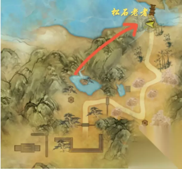 2、然后互动他面前的酒坛,每天互动三次机会(可以继续互动,但没效果),建议不要点第四次,不然会有醉酒buff 3、互动成功之后会天旋地转,嗯,直接镜头翻转过来,然后你就会自动走近那幅画,眼前一黑。如果没有做过门派宠物任务,那你还会获得“游历!迷仙引”的成就。 4、然后就是找到松石老者 位置介绍: