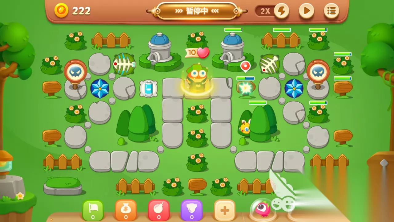 四、鱼刺是这一关里边最基本的炮塔,一定要记住多摆! 等咱们最基本的几个中心的炮塔摆好了之后,咱们就要在周围的当地扩大咱们的鱼刺了。在这里小编要跟咱们说,鱼刺便是是这一关最基本的炮塔了,由于在这一关里边,除了那个雪花能够把怪物们给冻住之外,再没有什么能够控制住他们的炮塔了,而鱼刺就能够很有用的把这个缺陷给补上,它能够把怪物们给刺晕,所以说在那几个中心的炮塔摆好了之后,那咱们就要在周围摆鱼刺了哦。