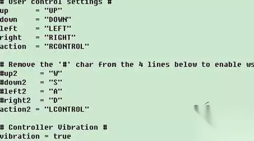 右边的“UP”为可更改指令,玩家可以自己设定按键操作“上”的键盘快捷键。例如我如果想用键盘的“E”来表示方向键“UP”,则更改结果如下: UP="E",其他按键设置依此类推。 如转载涉及版权等问题,请作者与我司联系,我司将在第一时间删除或支付稿酬。