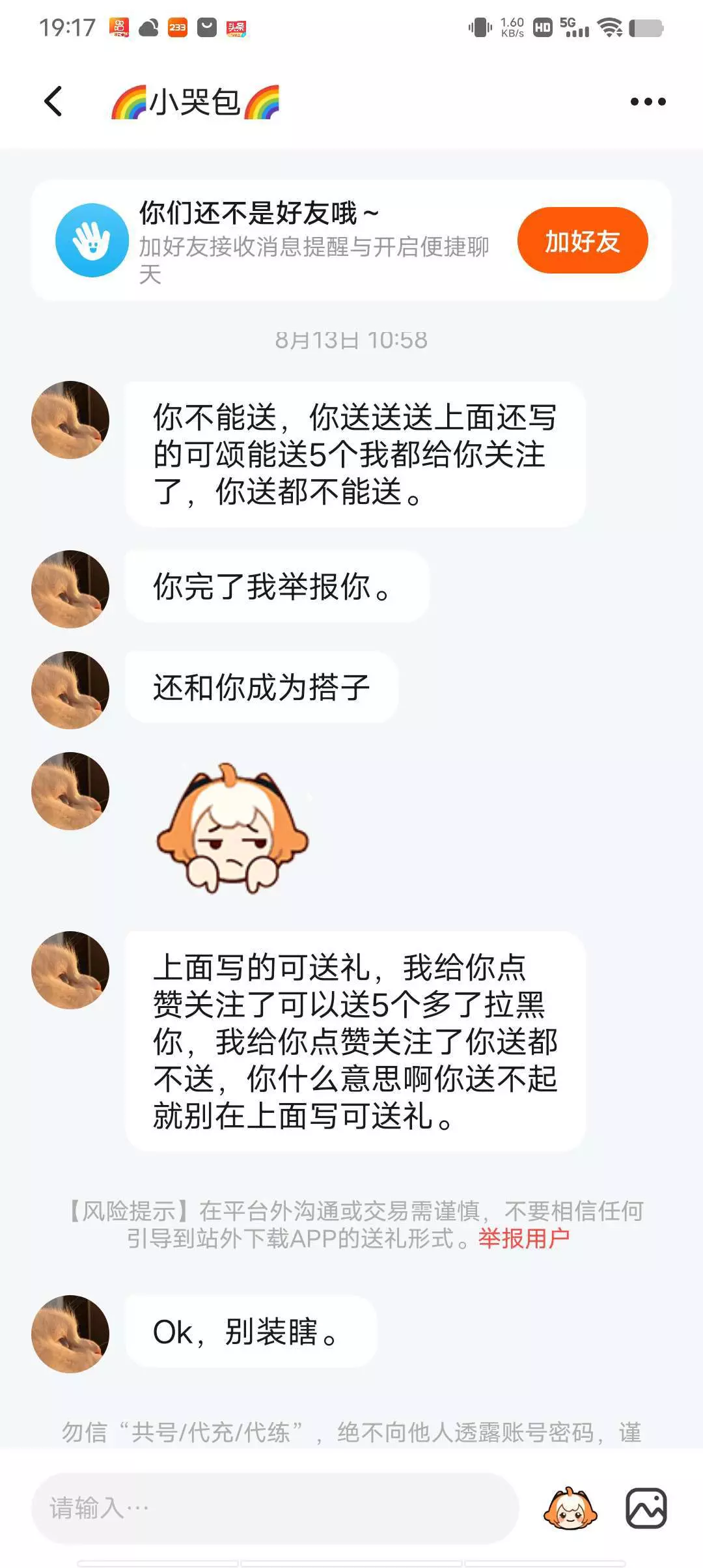 哈哈哈哈,不仅可以玩他的号,还送我一个礼物
