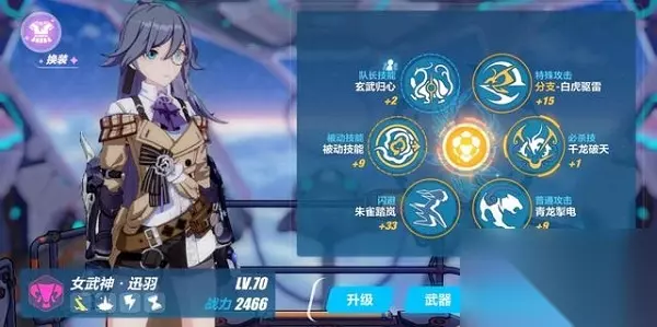 ★「断光之努亚达」★ 「断光之努亚达」的被动技能可以无条件地提高自身雷电元素伤害,适合「雾都迅羽」使用。 ★「太虚之握」★ 「太虚之握」的被动技能可以让使用者在进行不同的操作后获得全伤害提高的效果,不同类型的触发效果可以叠加,有效地提高了「雾都迅羽」的输出**。*动技能【阴阳】可以时空锁定被命中的敌人,可以配合QTE触发条件为时空减速的女武神来使用。