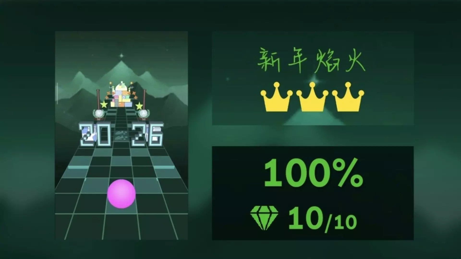 ────────》====)关卡信息(====《──────── 定数:3.9/4.8 主线/奖励:新年旅程 收集:见封面 音乐支持(侵删):滚动的天空:辉光海…