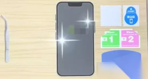 3、擦完屏幕之后,使用除尘贴,将灰尘清理干净 4、使用绿色的湿纸巾,继续擦手机屏幕,然后再用粉色的擦干 5、之后拿起手机膜,对准手机贴上去 6、最后一步,用刮板将气泡刮掉,刮不掉的用手指点掉