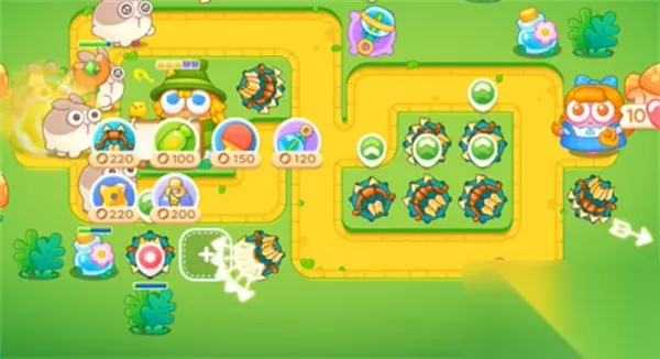 5、左边中间位置造章鱼塔,这关主要火力是风扇和火炮,具体炮塔位置见下图。